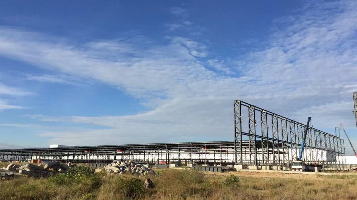 柬埔寨中國鋼鐵有限公司,鋼結(jié)構(gòu)項(xiàng)目建筑面積為3.6萬平方,車間高度24米,行車吊重63噸