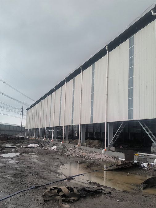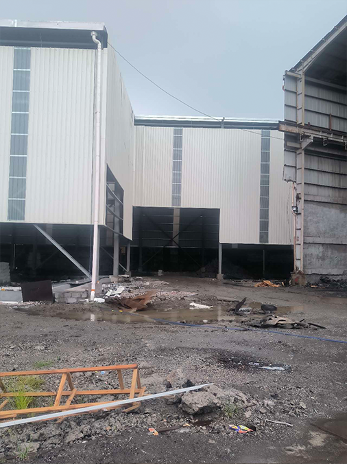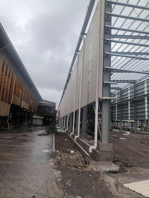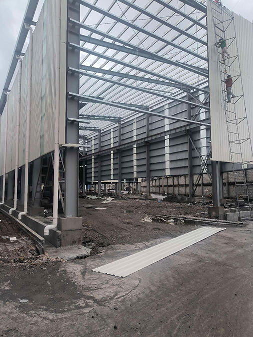 Davao Steel Plant Project, Philippines, steel structure construction area 47,000 m², maximum workshop height 28m, overhead crane lifting capacity 75t.